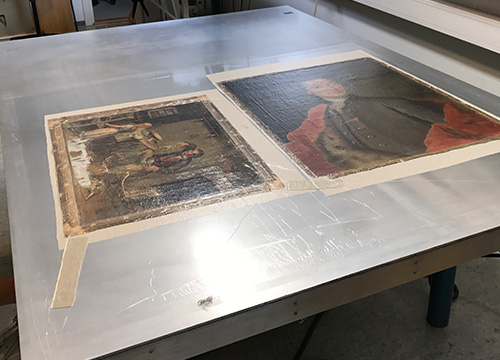 •  Overføring av maleri til støttelerret/lav-vakuumdublering     •  Kitting
